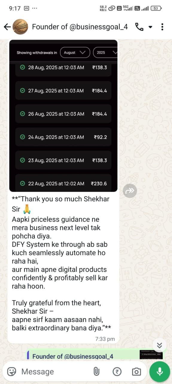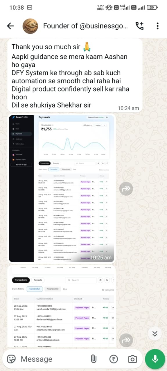 Trained 500+ students in digital earning ✅ Generated over ₹7 Lakh+ in earnings through smart digital systems ✅ Specialized in: Content Creation, Referral Systems, Affiliate Marketing & Funnels DFY Earning SystemMy mission is simple: 👉 To help you stop struggling and start building a profitable online income system, even if you’re a complete beginner.